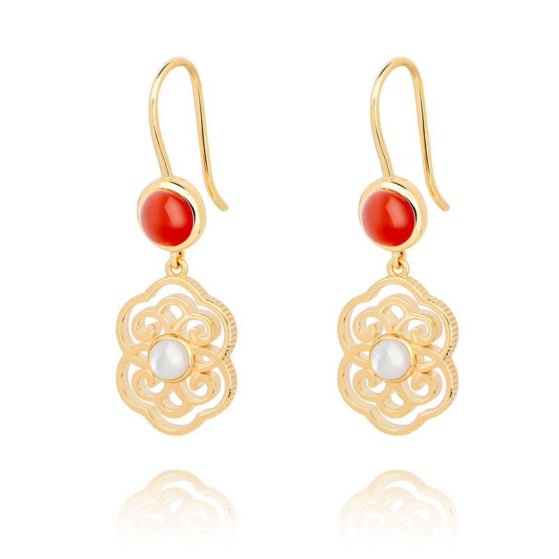 Blissful Ruyi Hook Earrings with Carnelian
