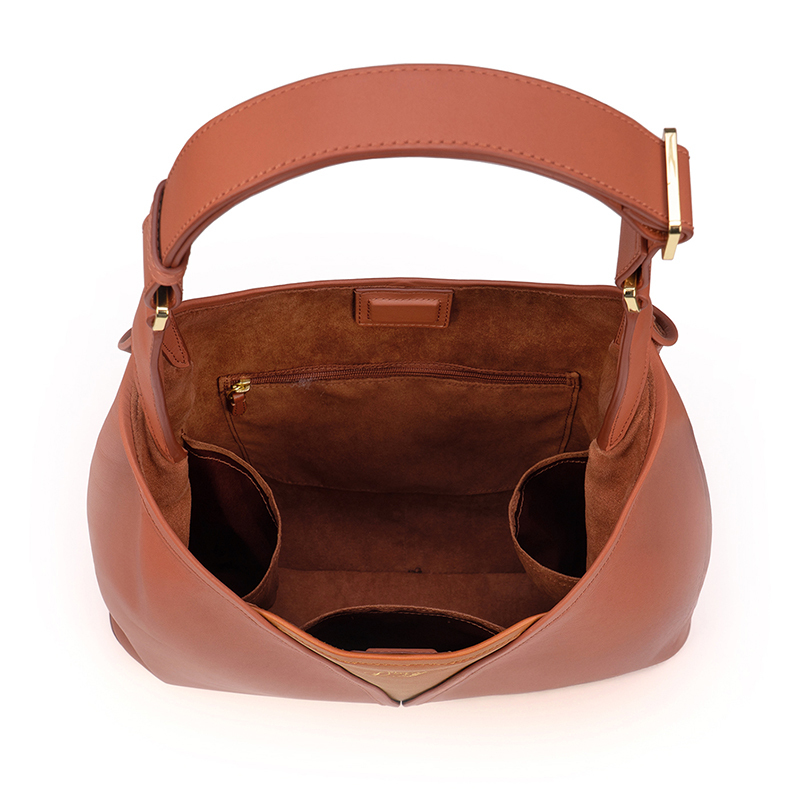 漢服,中華神傳文化瑰寶之一, 為三皇五帝至明末時期漢人所穿的傳統服飾,一朝一代不僅獨具特點,皆蘊含著敬天、重德的內涵。此肩背式皮件將神韻舞台服飾常見的直領對襟漢服設計融入外型,採用柔軟的皮感,配上多口袋收納空間,創造東方優雅的時尚感。