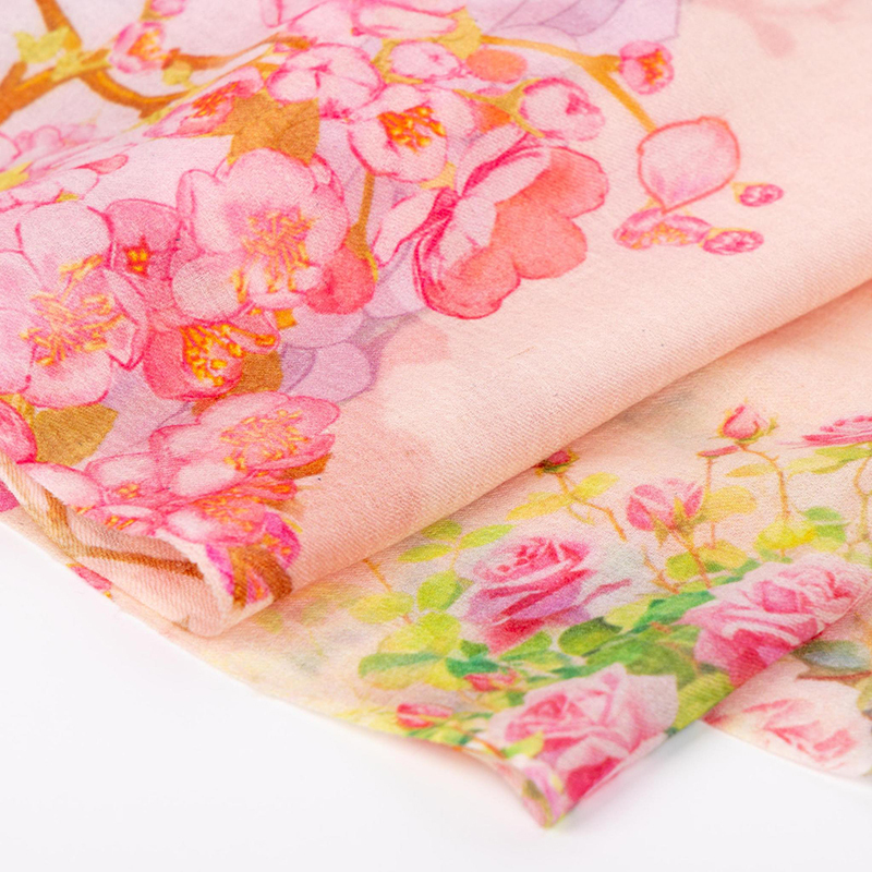 此長巾以柔軟的羊絨與絲綢混紡面料製成,色彩淡雅而不失層次,有如溫婉動人的畫卷,引領您重溫遠古的一段靜謐的庭院時光,同時也將碧水遠山的愜意及花影搖曳的韻律一一織入您的風姿。願此款精美的設計展現您對優雅生活的詩意詮釋。