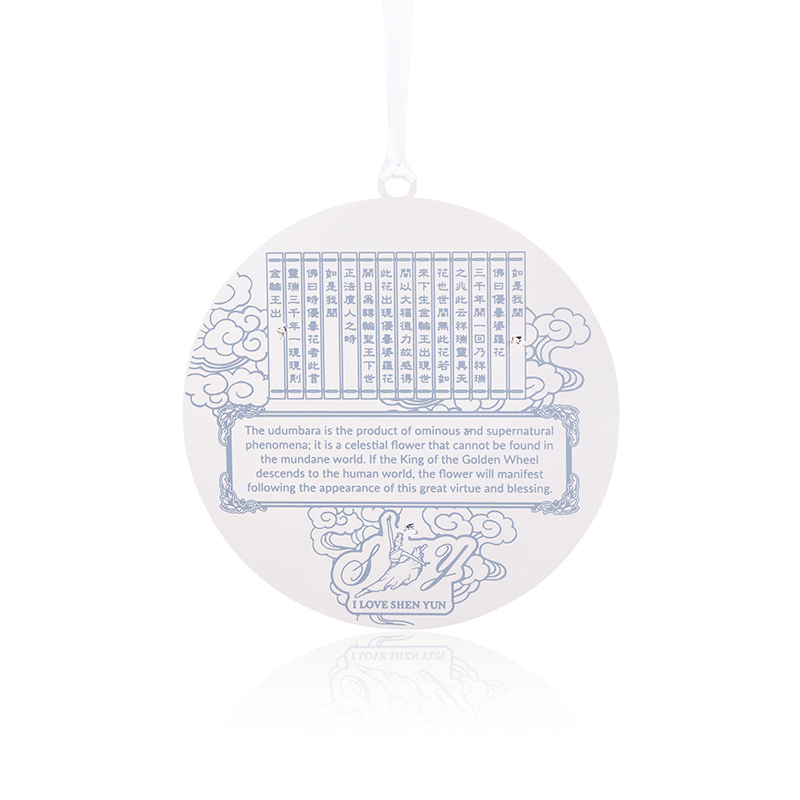 佛經中記載,優曇婆羅花乃三千年一開的仙界奇花。亦有記載:「世間無此花。若如來下生、金輪王出現世間,以大福德力故,感得此花出現。」優曇花近年來於世界各地盛綻,象徵著渡人大法已來到。此款掛飾設計靈感源自神韻節目《婆羅花開》,願優曇奇花所承載的天界祝福環繞您生活中的溫馨時光。